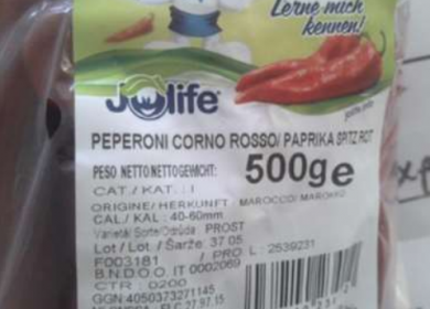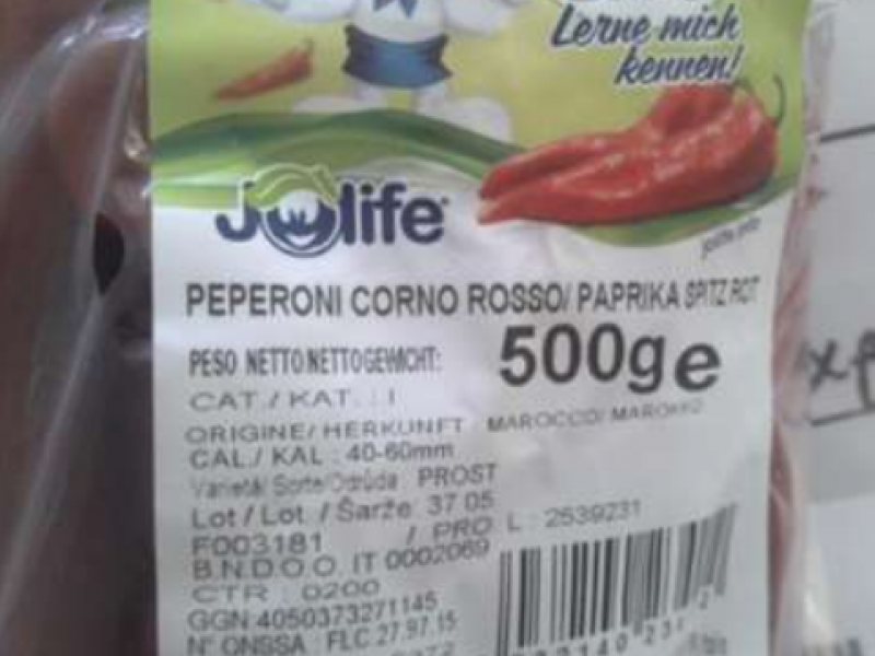Pesticidi oltre i limiti, richiamati peperoni corno rossi ‘paprika spitz rot’ a marchio Jolife dal Marocco