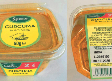 I supermercati Carrefour hanno segnalato un richiamo da parte del produttore, comunicandolo attraverso il proprio portale dedicato agli “Avvisi di sicurezza e ai Richiami di prodotti alimentari”, per rischio microbiologico, a tutela della salute dei consumatori. Questa volta il richiamo precauzionale dagli scaffali da parte del produttore riguarda un lotto di curcuma in polvere a marchio Colfiorito. Il motivo indicato nell’avviso di richiamo, è la presenza di un potenziale rischio microbiologico non meglio specificato, identificata nell’ambito di controlli interni. Il prodotto in questione è venduto in confezioni Il prodotto in questione è venduto in vaschette di plastica da 60 grammi ciascuna, con il numero di lotto 2510153 e il termine minimo di conservazione del 30/10/2026. L’azienda che ha confezionato il prodotto è la Fertitecnica Colfiorito Srl con stabilimento che si trova a Montecassiano, in provincia di Macerata, in via Grazia Deledda 32-38. Il produttore sottolinea che la curcuma è stata richiamata, meramente, a scopo prudenziale, per approfondimenti relativi al rischio microbiologico. Tuttavia raccomanda nella nota di richiamo, se quindi avete acquistato il prodotto incriminato, rileva Giovanni D’Agata, presidente dello “Sportello dei Diritti”, verificate nell’elenco in etichetta la corrispondenza con i dati: se il lotto di produzione e la scadenza coincidono, non consumatelo ma restituitelo al punto vendita di acquisto, dove si provvederà alla sostituzione o al rimborso.